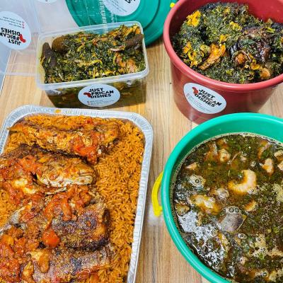 Vegetable Soup and jollof rice bowls