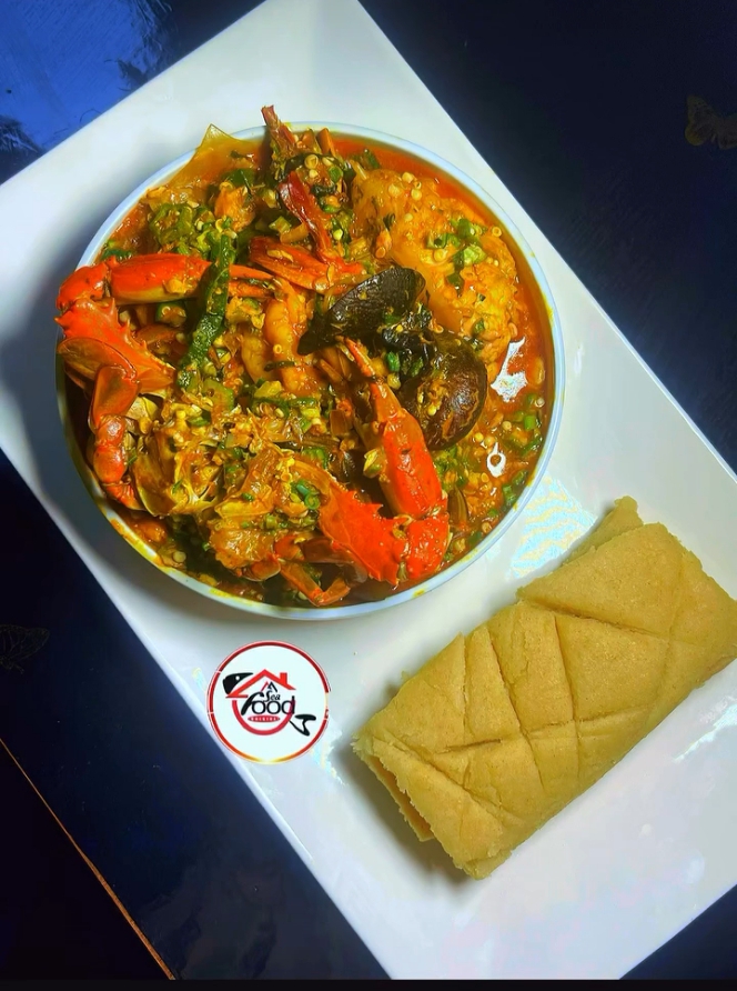 Eba and Seafood Okra